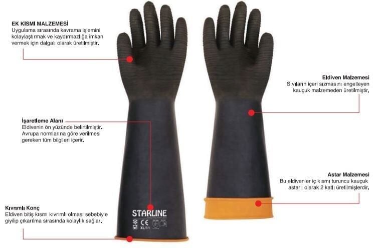 Starline H2-45 Tırtıklı Doğal Kauçuk İş Eldiveni 45 cm (Yoğun Yağlı Ortam) Starline H2-45 Tırtıklı Doğal Kauçuk Eldiven: 45 cm uzunluk ve 0.70mm kalınlık. Tırtıklı avuç içi yapısıyla yoğun yağlı ortamlarda üstün kavrama. EN 388 (3110X) standardı. Kol ve el koruması için ideal H2-45
