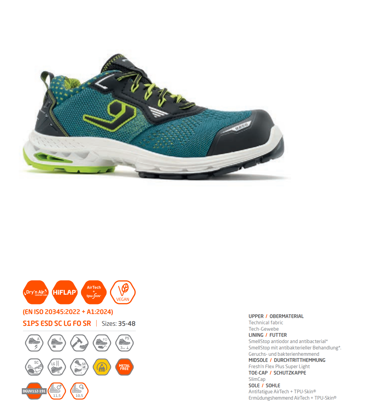 BASE 1704E Roma S1PS ESD SC LG FO SR Vegan İş Ayakkabısı ile iş yerinde %100 güvenlik ve konforu deneyimleyin!