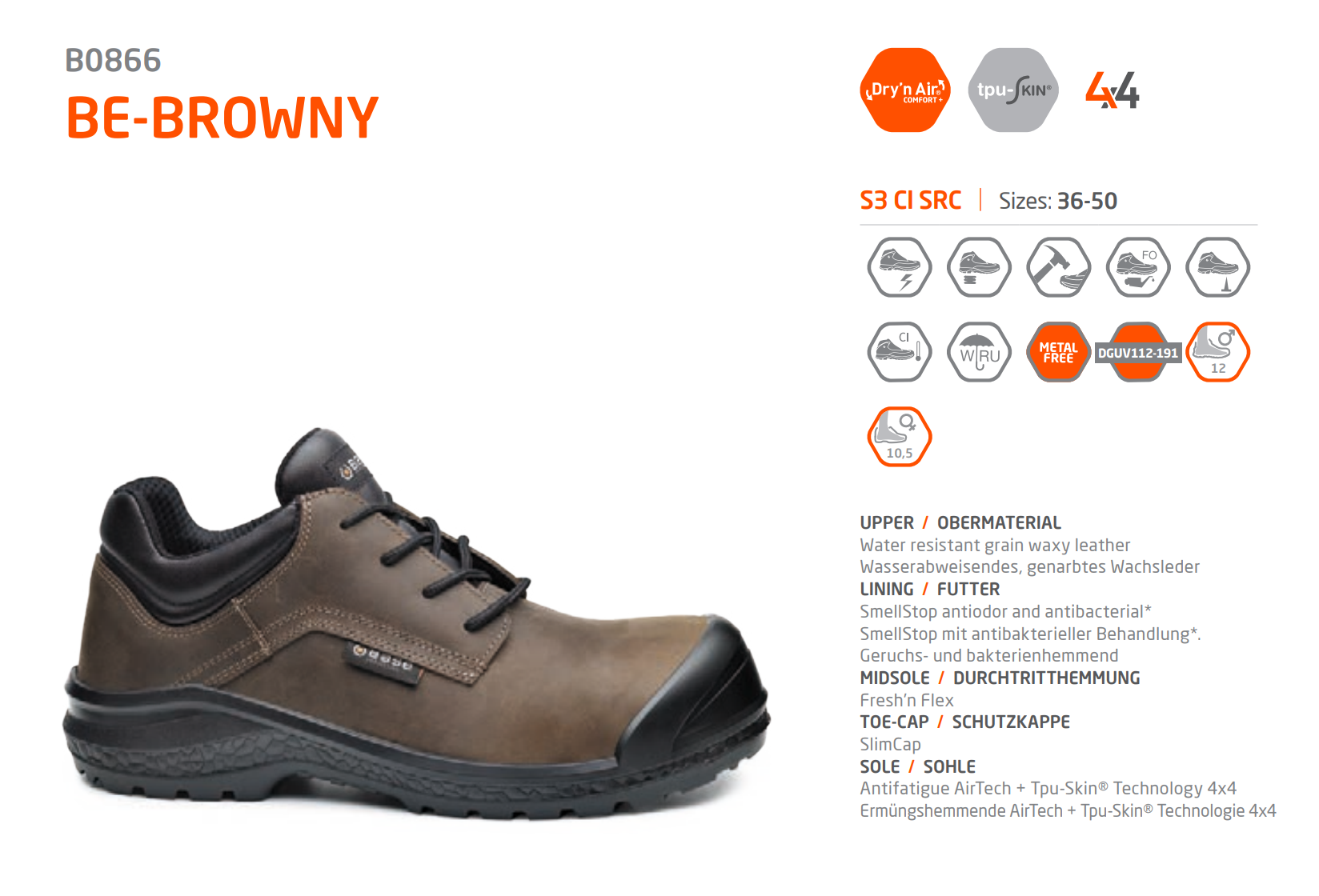 Base B0866 Classic Plus Be-Browny S3 CI SRC Kompozit Burun İş Ayakkabısı, iş güvenliği ve konforunu ön planda tutanlar için mükemmel bir tercihtir. Hem şık hem de dayanıklı yapısıyla uzun ömürlü kullanım sunar.