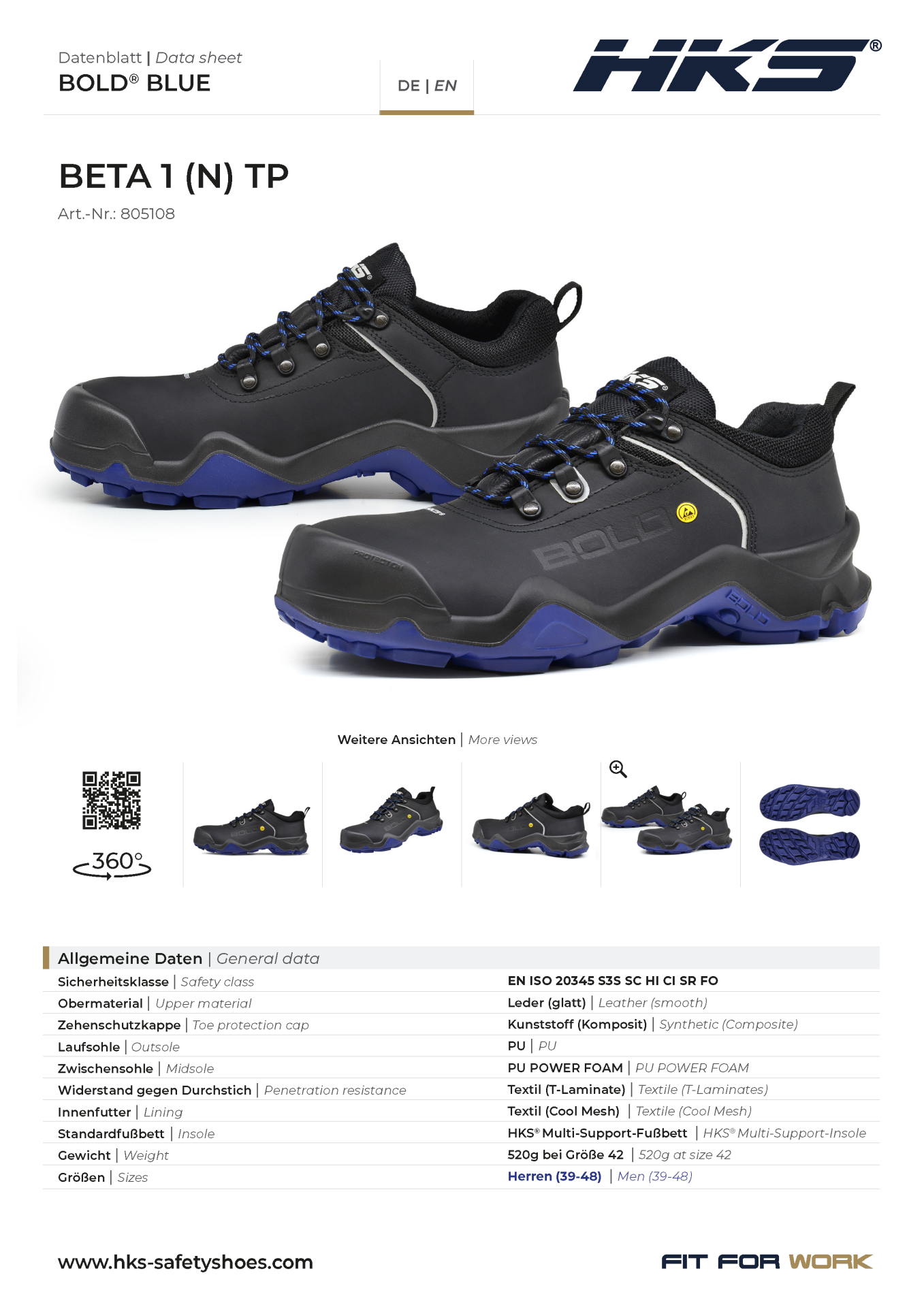 HKS BETA 1 (N) TP S3S HI CI SR FO İş Ayakkabısı, iş güvenliği standartlarını en üst seviyeye taşırken, tüy kadar hafif yapısıyla (sadece 520 gr!) çalışma performansınızı artırmak için tasarlandı. Modern tasarımı ve ileri teknoloji koruma özellikleriyle hem iç hem de dış mekan kullanımında mükemmel konfor sunar.